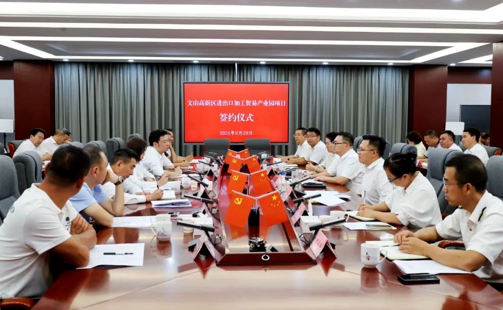 9月29日,文山高新區(qū)進(jìn)出口加工貿(mào)易產(chǎn)業(yè)園項(xiàng)目正式啟動(dòng),會(huì)上集中簽約一批重點(diǎn)項(xiàng)目、與州內(nèi)部分企業(yè)家座談,公司高總就當(dāng)前出口貿(mào)易形勢(shì)及對(duì)策作交流發(fā)言。州委常委、市委書記蔣俊,市委副書記、市長(zhǎng)樂(lè)加文以及州、市有關(guān)部門及27家企業(yè)有關(guān)負(fù)責(zé)人參加。